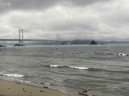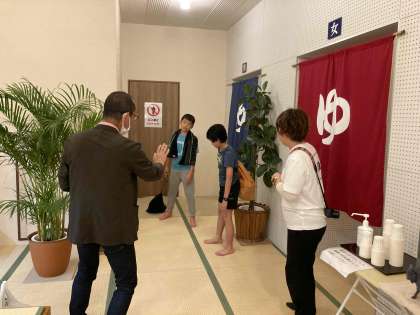 鳴門海峡大橋を渡り、宿泊場所に無事に到着です。予定より少し遅くなりましたが、雨のため入館式は後にして、先にお風呂に入っています。