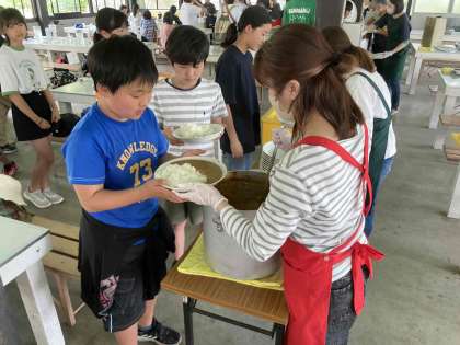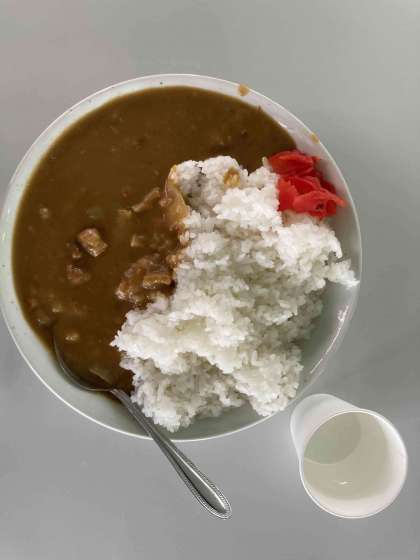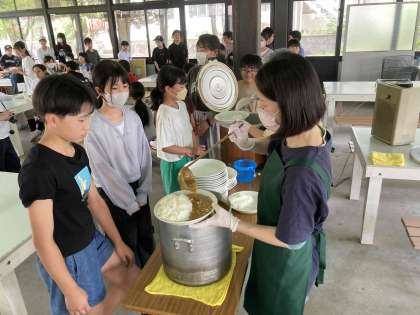 玉ねぎを収穫の後、昼食をいただきました。玉ねぎもたっぷり入ったミルクビーフカレー。量は自分で選びます。
