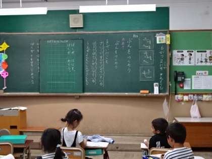 「ぶんをつくろう」の学習です。平仮名を学習して、たくさんの言葉も平仮名で書くことができるようになってきた1年生。今日は文を作ることを学習しました。