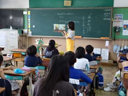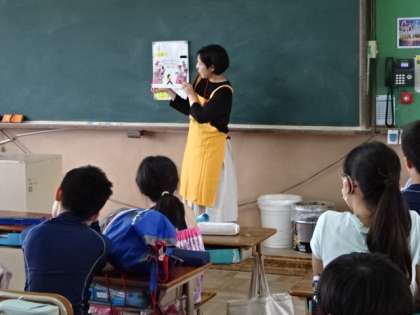 朝の読み聞かせ。3日目の今日は、5年生と6年生の教室で読み聞かせをしていただきました。