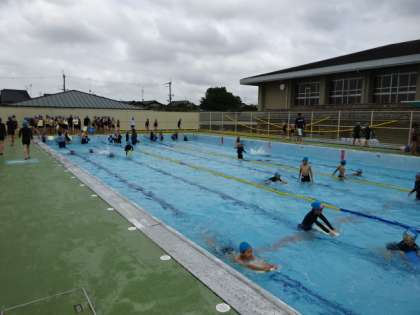 水泳の学習が始まっています。限られた時間の中で、少しでも泳げるようになろうと、各自がめあてを持って頑張っています。