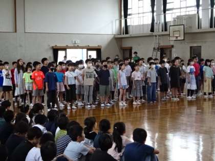 1年生を迎える会がありました。4年ぶりに体育館に全員が揃っての開催でした。私も着任して以来初めてのことで、会を思う存分に楽しませてもらいました。どの学年の発表も本当に素晴らしく、あらためて上賀茂の子どもたちの力ってすごいなと感じさせられました。