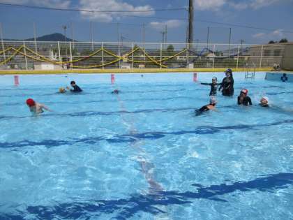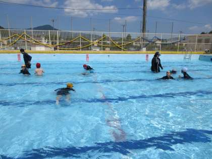 子どもたちは、プールに沈めた物をもぐって拾ったりお友達と水に親しみながら、楽しく活動を行っていました。