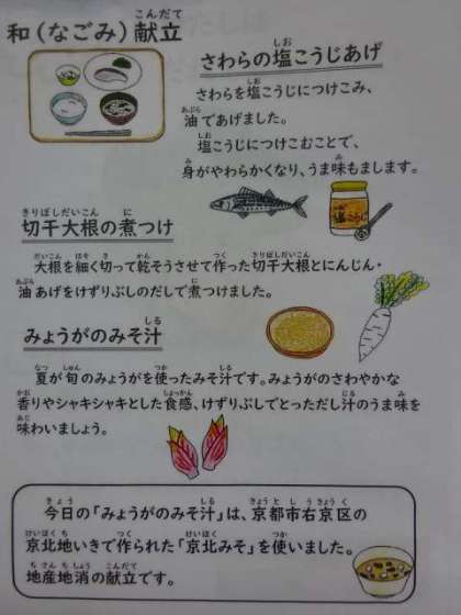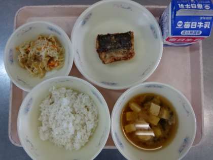 今日の献立は、「麦ごはん・牛乳・さわらの塩こうじあげ・切干大根の煮つけ・みょうがのみそ汁」でした。衣がサクサクのさわらは、子どもたちにも好評でした。今日も美味しい給食、ごちそうさまでした!