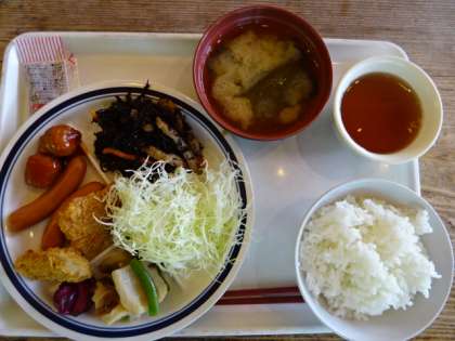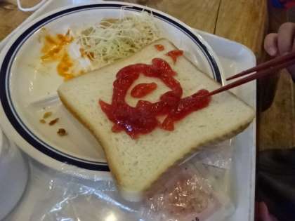 朝食をしっかりと食べて、登山に備えます。ご飯かパンを選んで食べています。両方食べた子もいます。元気です。