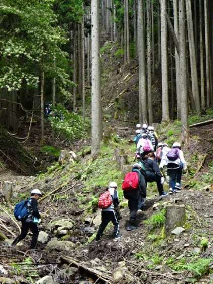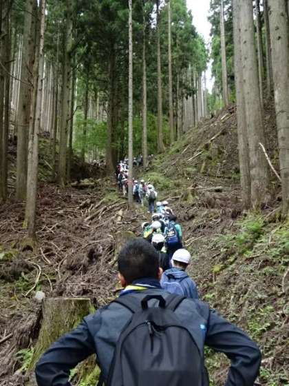 途中に休憩をはさみながら、自分の体力に合わせたペースで歩きます。山の家の先生から、自然についてもたくさん教えていただきました。