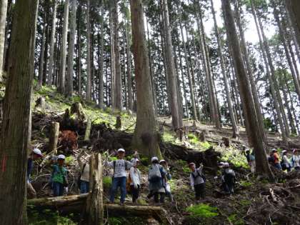 途中は、お互いに励ましあう声が聞こえてきました。疲れてめげそうになる時も、「頑張ろう!」というかけ声で標高910mにある雲取山の山頂を目指しました。
