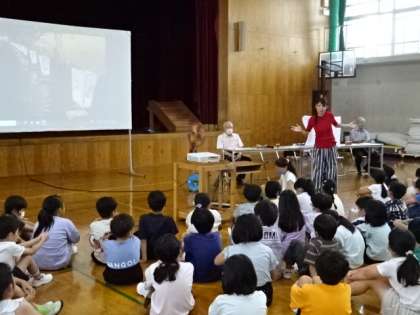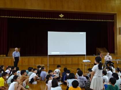 今日、お話を聞かせていただいたことを受けて、大きな和紙に各自で絵を描いていきます。どんな絵を描くのか、それぞれに思いが広がってきました。自分が作った行灯が明神川に並ぶことを思いながら、これから作成に入っていきます。