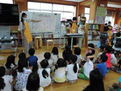 7月のおはなしの会は、4、5、6年生の本クラブの子どもたちも見学しました。のほほんクラブさんの読み聞かせの技をたくさん見つけられたことと思います。本クラブは、今後、読み聞かせに挑戦する予定です。