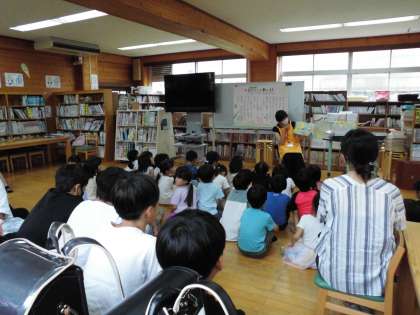 子どもたちは紙芝居も大好きで、1年生も高学年もお話の世界に惹き込まれていました。