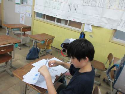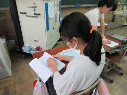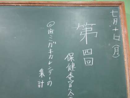 6月に実施した歯磨きカレンダーの集計を行いました。保健委員の一人一人が真剣に黙々と取り組んでいます。