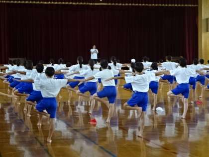 スポーツフェスティバルに向けての練習が、各学年で始まっています。6年生も、小学校生活最後の演技をしっかりと披露できるように練習です。暑さ対策にも十分気を配りながら練習を進めていきます。