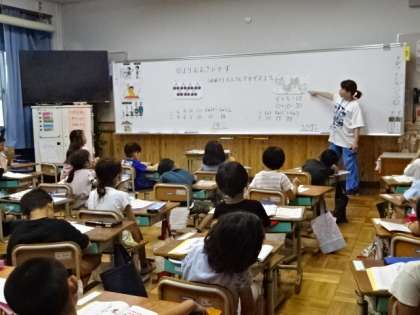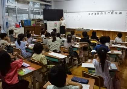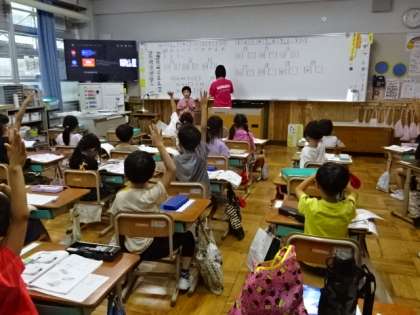 スポーツフェスティバルに向けての練習の後の教室での学習。1年生は算数を学習していましたが、学習にも集中して取り組んでいます。素敵な1年生の姿です。