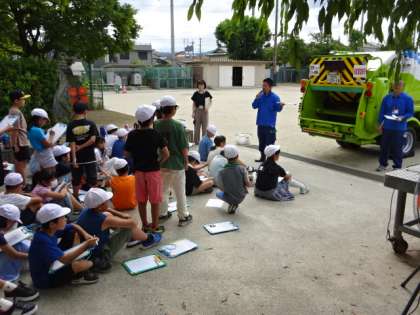 京都市のまち美化事務所の方々に来ていただき、京都市のごみの回収の仕組みや、環境問題についてお話をいただきました。「さすてな」に見学に行ったことも踏まえて、関心を持って学ぶことができました。今回学んだことは、家族等の身近な人たちにも伝えて、たくさんの人が環境について意識できるようにしていきたいです。