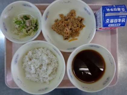 今日の献立は、「麦ごはん・牛乳・おからツナ丼(具)・鶏肉とピーマンのごまいため・赤だし」でした。今日は、和献立の日でした。4年生は、昨年度にピーマンを育てていたことを思い出し、しっかり食べていました。今日も美味しい給食、ごちそうさまでした!