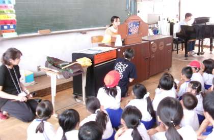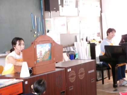 今回は、工事の影響で中庭が使用できなかったため、音楽室で行いました。