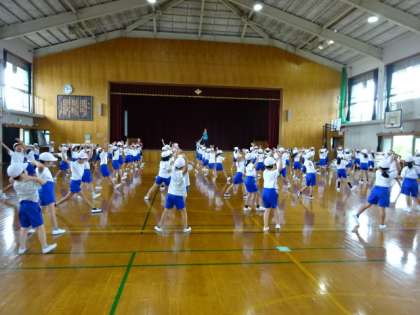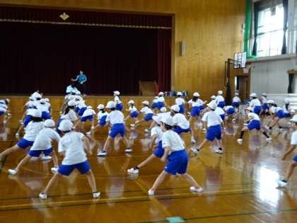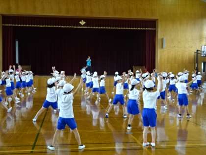 2年生もスポーツフェスティバルに向けての練習が始まりました。先生の動きを見ながら、振付けを覚えていきます。力強い演技に期待です。