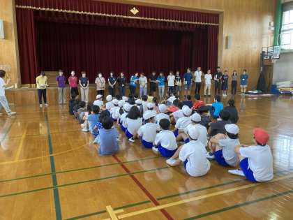今年度の部活動がいよいよスタートします。今年は、タグラグビー・サッカー・卓球・バレーボール・和太鼓の5つの部があり、開講式では、それぞれの部で頑張って活動していくことを確認しました。