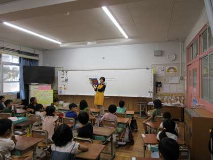 のほほんクラブの方々による朝の読み聞かせが1組と1・2年生の教室で行われました。