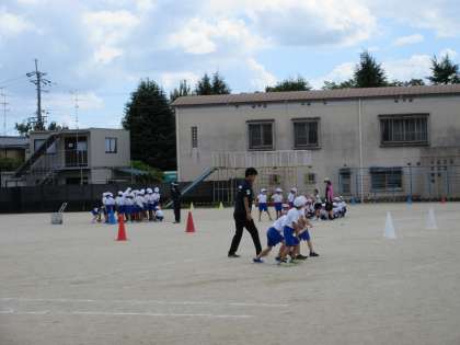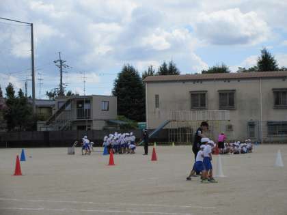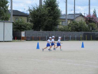 3年生は、運動場で元気いっぱいにスポーツフェスティバルの練習を行っていました。台風の目では、みんなの応援の声が飛び交い、盛り上がっていました。みんなで一生懸命に取り組んで頑張っています。