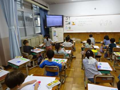 各学年、お話の絵に取り組んでいます。描き始めた学年もあれば、3年生はほぼ仕上がってきて、楽しい作品が並びはじめています。