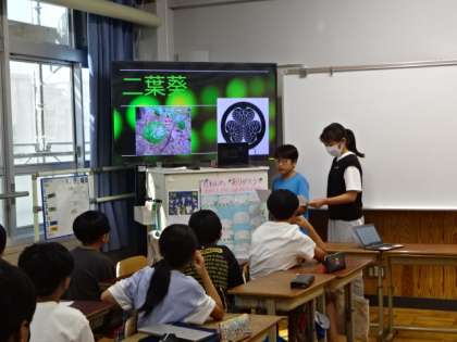 静岡市立葵小学校とのオンライン交流で、本校の6年生が上賀茂の町の様子を発表し、葵小学校の6年生に聞いてもらいました。この交流は、双葉葵を縁に、長く続いています。葵小学校は10月の修学旅行で京都に来られ、その際には、上賀茂神社も参拝されます。修学旅行で訪れる地のことを、少しは知ってもらえたのではないでしょうか。