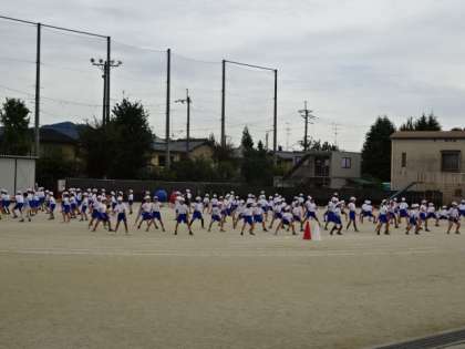 4年生も、スポーツフェスティバルに向けて、最後の練習です。ラグビーのワールドカップが、今、開催されていますが、威勢の良いかけ声で4年生の種目が始まります。当日、盛り上がること、間違いなしです。