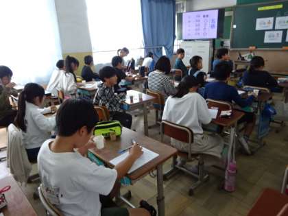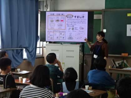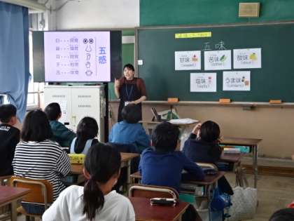 栄養教諭による「だし」の授業です。和食には欠かせない「だし」のうま味を、五味で感じました。明日の給食も、「だし」のうま味を感じながらいただきたいです。