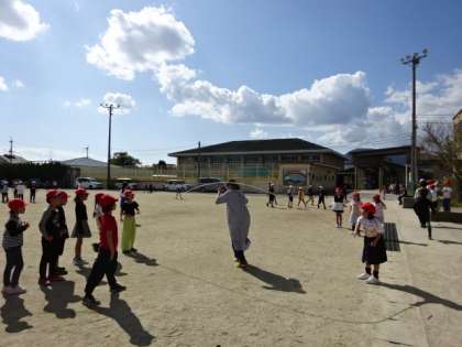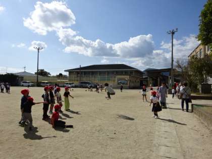 秋晴れのさわやかな気候が続いています。運動場で元気に遊ぶ姿もたくさん見られらます。体育で縄跳びを学習している1年生は、先生と一緒に大なわとびにも挑戦しています。6年生も一緒に入って楽しく過ごしています。