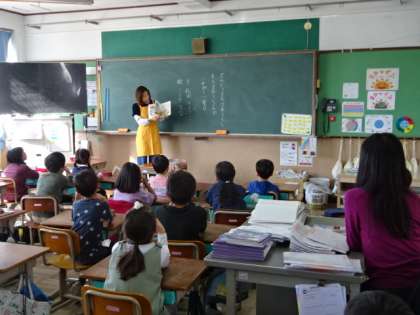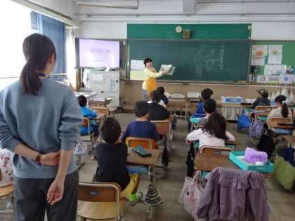 今日は3・4年生の教室で読み聞かせをしていただきました。3年生の教室では、担任も子どもたちと一緒にお話を楽しく聞かせていただいていました。
