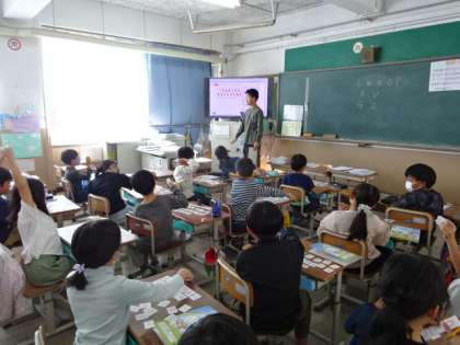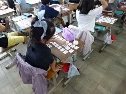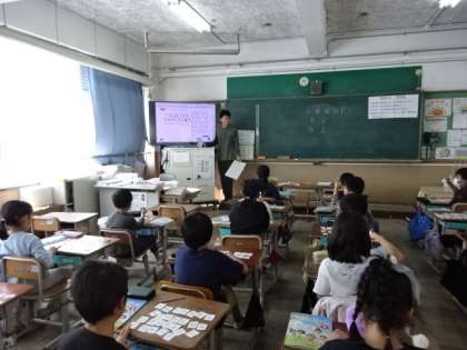 外国語活動の時間、アルファベットを学習しています。似たような発音のアルファベットがあり、発音の違いを聞きとろうと、集中して聞いていました。