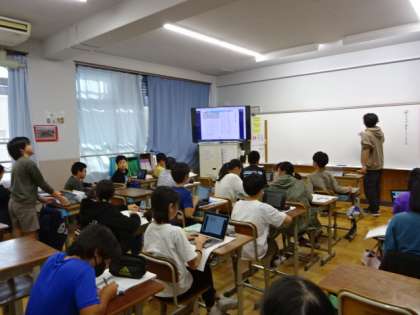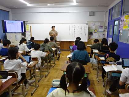 「鳥獣戯画を読む」の学習です。昔に描かれた絵巻物を見ながら、どのようなストーリーが展開されているのかを考えていきます。