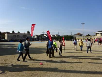 上賀茂学区の総合防災訓練が行われ、地域の皆さんが町内ごとに運動場に避難してきました。運動場では災害時にできることを、体験を通して学びました。