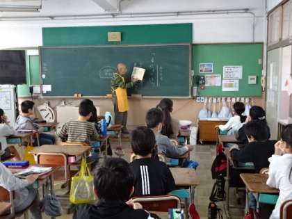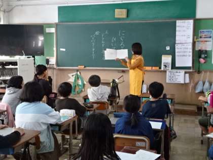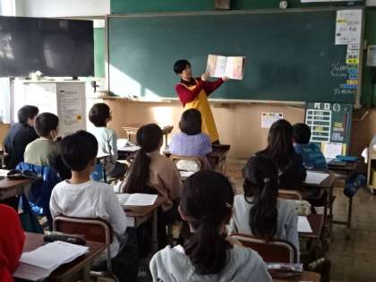今日は5・6年生の教室で読み聞かせをしていただきました。