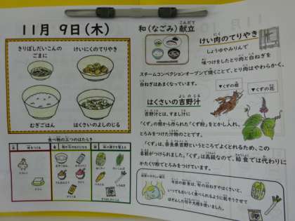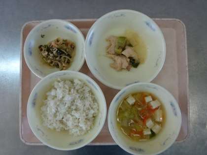 今日の献立は、「麦ごはん・鶏肉のてり焼き・切干大根のごま煮・はくさいの吉野汁」でした。今日は和献立の日。和食をじっくりと味わいながらいただきました。今日も美味しい給食、ごちそうさまでした!