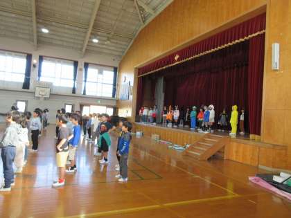 楽しく学習発表会の練習を重ねてきた3年生たち。本番では、合唱や合奏に合わせて、色とりどりの鮮やかな衣装を身に付け息の合った演技に感動しました。その光景に2年生も憧れの眼差しでした。たくさんの保護者の方々に来て下さり、会場は大いに盛り上がりました。有難うございました。