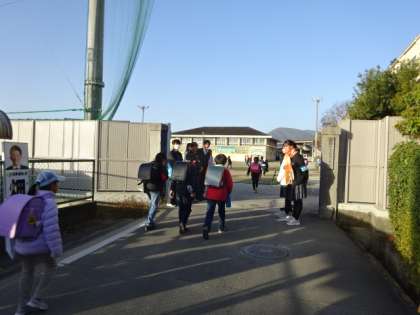 加茂川中学校の生徒会メンバーが朝のあいさつ運動に駆けつけてくれました。小学校の計画委員会のメンバーも一緒になって、登校してくる子たちに挨拶の声を届けてくれました。いつもと違う光景に、少し驚いている様子もありましたが、いつもと変わらずあいさつを交わしながら登校していました。