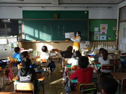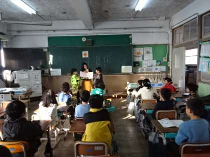 3・4年生の教室での、朝の読み聞かせの様子です。3年生の教室では、前に出てきて読み聞かせに一緒に参加させてもらっているところもあり、楽しくお話を聞かせてもらっていました。