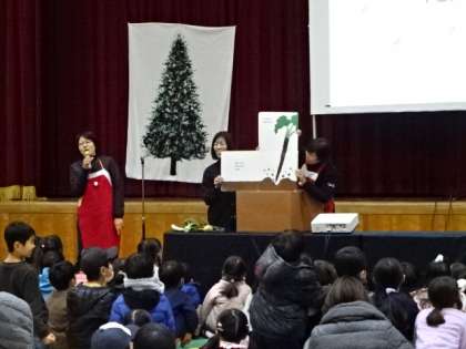 読み聞かせとともに、演奏あり、クイズあり、手あそびありと、盛りだくさんの内容にみんな大喜びでした。最後には、「たくさん本を読んでね。」という思いを込めて、一人一人に「しおり」がプレゼントされました。いつもありがとございます。