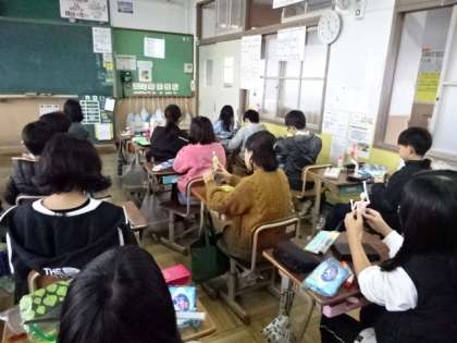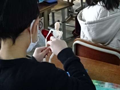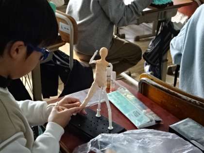 粘土を使って、将来の自分の姿を表現します。支柱となる針金である程度の形を作り、動きを感じられるように粘土で表現していきます。集中して取り組んでいます。