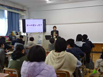 警察署の方々に来ていただき、薬物乱用防止教室を行いました。薬物の怖さを知るとともに、もし自分が薬物をすすめられたらどのようにして断るか、練習もしました。正しい知識をもつことともに、正しい判断ができるようにしたいです。