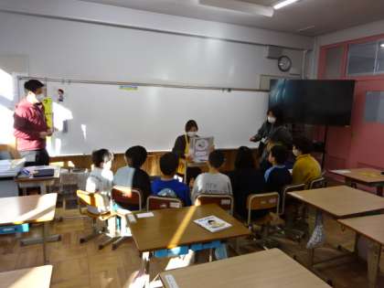 2月の朝の読み聞かせがスタートしました。1組では、のほほんクラブの方の前にみんなが集まって、楽しくお話を聞かせてもらいました。