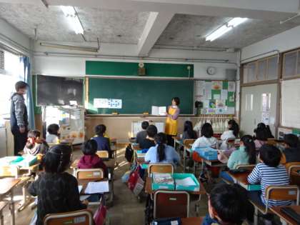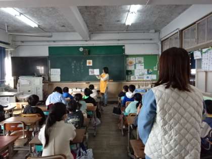 今日は3・4年生の教室に来ていただきました。3年生の教室では、担任の先生も一緒に読み聞かせを楽しませてもらっています。
