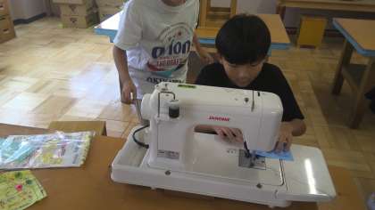 家庭科の学習で、ミシンの学習をしています。