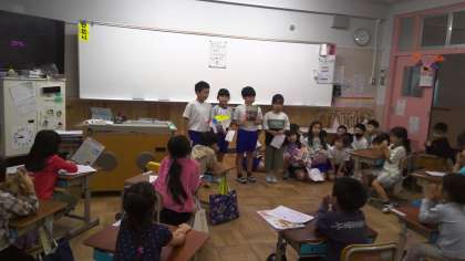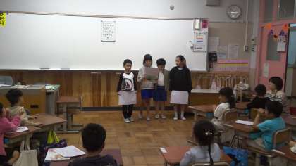 国語科「おすすめの本を一さつ決めよう」の学習で、おすすめの一冊を1年生に紹介しました。一冊を決めるにあたり、自分の意見を主張しつつも、テーマに合った本を班で話し合い決めました。子どもたちは、自分の本を一冊に決めたい思いを持ちながらも、より1年生に向いている本を選ぶために、お友達の意見に納得したり、疑問を持った時には、聞き返したりしながら、協力して決めていました。