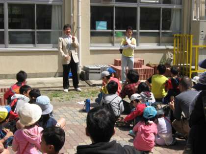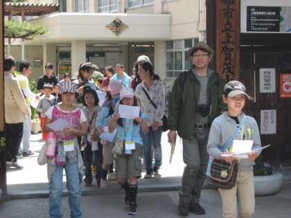 10時すぎ,いよいよ出発しました。子どもたちといっしょにお父さん,お母さんもまわります。