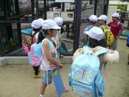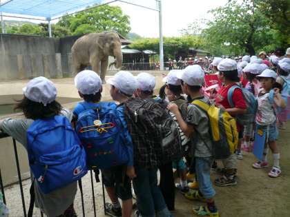 5月16日(水)2年生は,動物園に校外学習に行きました。まず,地下鉄で蹴上まで行き,そこからインクラインのある遊歩道を歩いて動物園に行きました。さあ,どんな動物がいるかな。「うわー,象さん,大きいなあ。」にわとりなどがいる檻もあります。子どもたちは、それぞれバインダーを持って,園内にあるクイズを解いてまわりました。