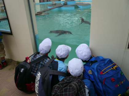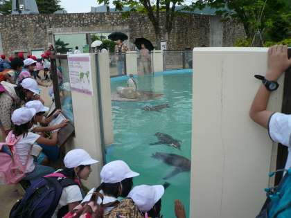 ペンギンが泳ぐ様子が間近で見られる水槽があります。「ペンギン,泳ぐの速いなあ。」さて,一通りオリエンテーリングも終わったので,木陰でみんなでお弁当を食べましょう。お弁当も食べ終わり,少し遊んで地下鉄に乗って学校へ帰りました。とてもいい天気で動物園に行けて,しっかり動物を見て,しっかり遊べてとても満足です。