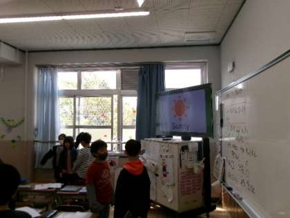 本日外国語活動で天気の尋ね方や、応え方について学習しました。
