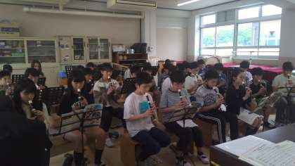 音楽の授業では、『ラバーズコンチェルト』のリコーダー演奏に取り組んでいます。これまで指使いや息の入れ方を意識して、2つのパートの練習を重ねてきました。